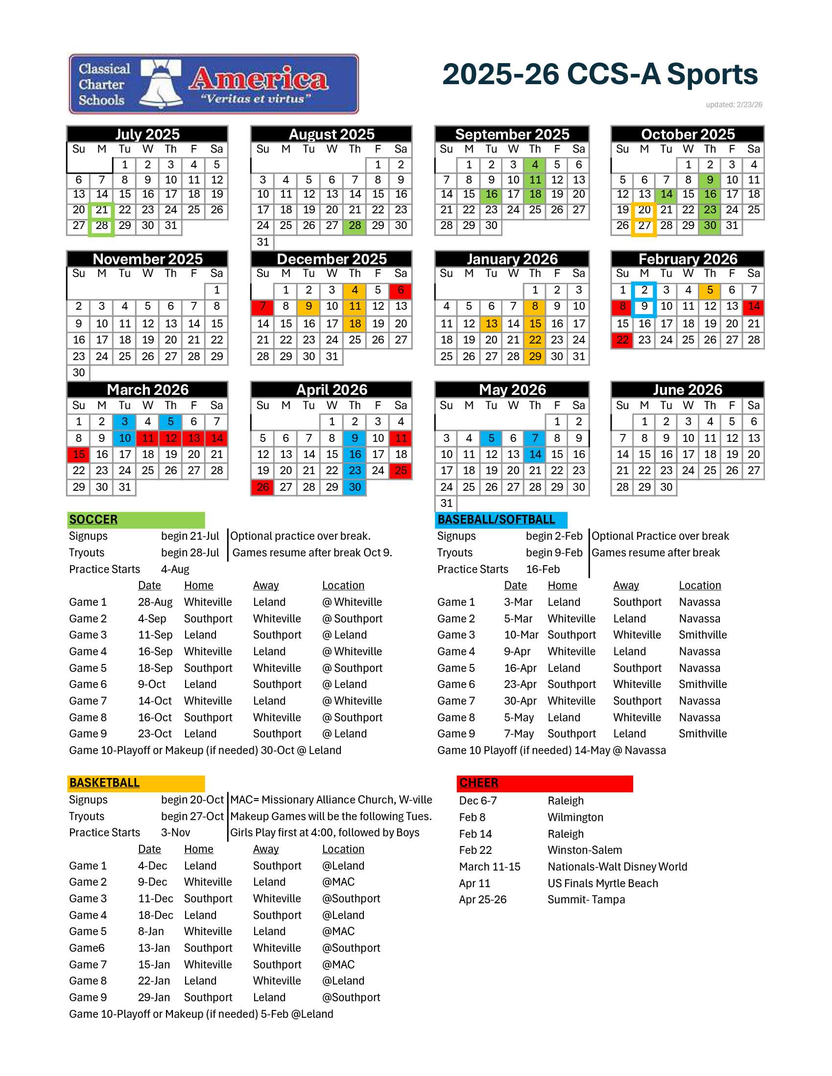 Quarter 4 is Here! Welcome back for the final quarter of the 2025-2026 school year! Be sure to look out for these upcoming events: For a look at the full 2025-2026 calendar, click on the link below: School Calendar ************** Softball and Baseball are Back at...